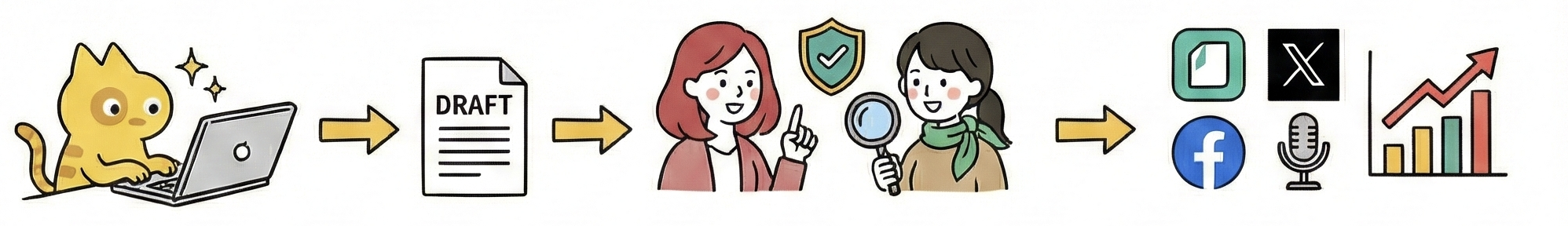 AIだけに書かせると、誤情報(ハルシネーション)や権利侵害が心配。一度でも炎上すれば、積み上げてきた信頼が崩れかねません。